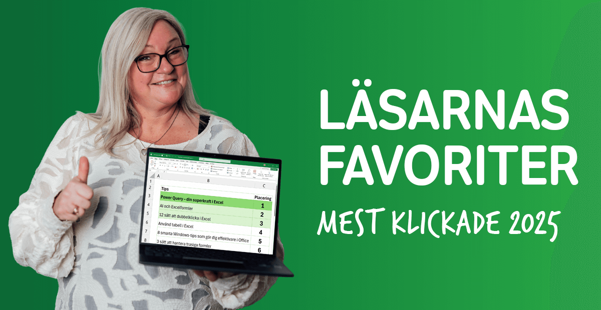 Varför borde du lära dig Power Query, ja så skulle man kunna sammanfatta detta tips som egentligen inte är ett traditionellt tips. Riktigt kul att detta hamnade på första plats. Kanske fler har fått upp ögonen för Power Query och om du inte har det så är det dags nu 😊. |