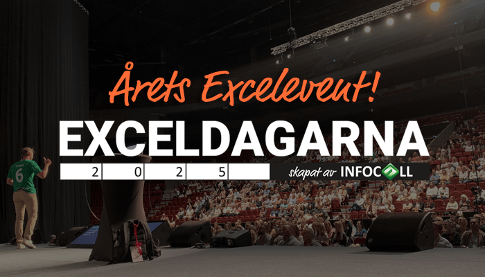 Och inte att förglömma – vårt stora Excelevent i december, Exceldagarna, närmar sig. Ett fullspäckat program med 26 föreläsningar på två spår under två dagar väntar. Läs mer och boka på exceldagarna.se.